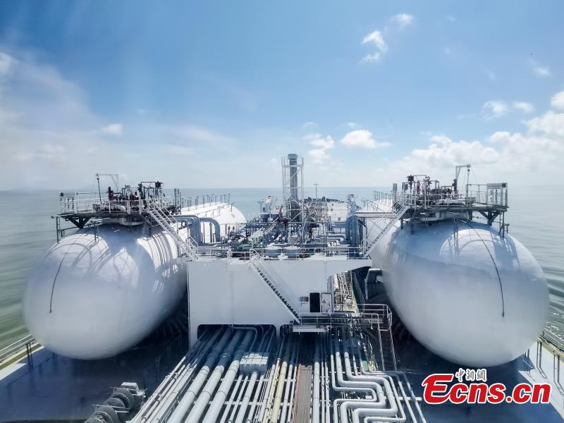 Photo shows the world's first Suezmax LNG dual fuel oil tanker with 158,000 DWT (deadweight ton) is delivered in Guangzhou, south China's Guangdong Province, June 28, 20222. (Photo provided to China News Service)