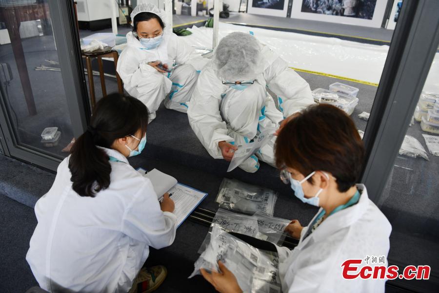 Archaeologists work from the No. 8 sacrificial pit at the Sanxingdui Ruins site in Guanghan, southwest China's Sichuan Province, June 28, 2022. (Photo: China News Service/Zhang Lang)