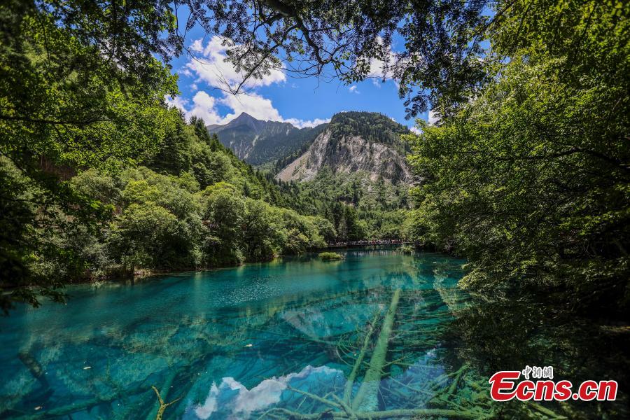 Magnificent summer scenery of Jiuzhai Valley in Jiuzhaigou County, southwest China's Sichuan Province, July 4, 2022. (Photo provided to China News Service)