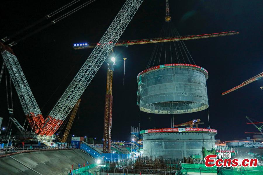 The installation of the upper section of the steel containment shell was completed on Wednesday. The overall height of the upper cylinder of the steel containment is about 15 meters, and the total hoisting weight is about 720 tons, the largest lifting weight in the installation.