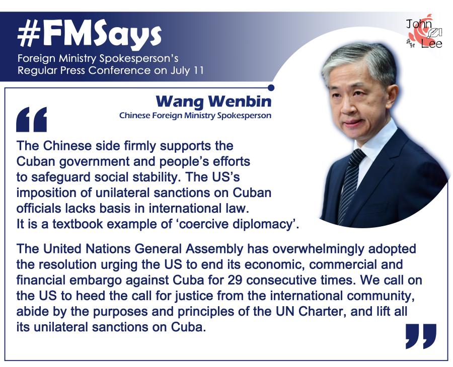 A Chinese Foreign Ministry spokesperson Monday urged the United States to lift unilateral sanctions against Cuba completely.
