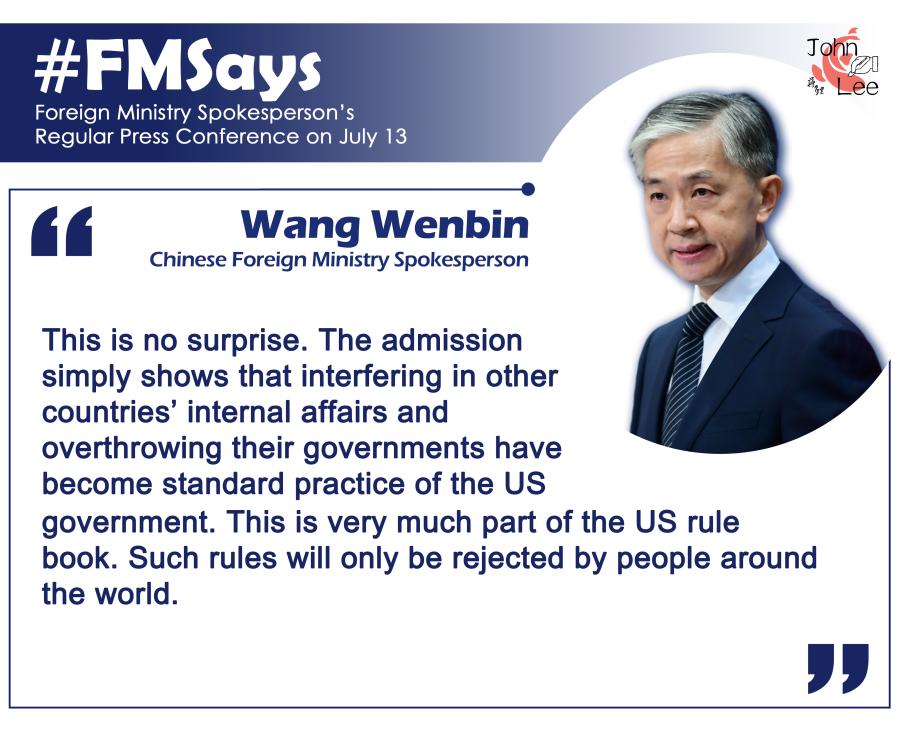 World will oppose 'U.S. rules' of foreign interference: FM spokesperson