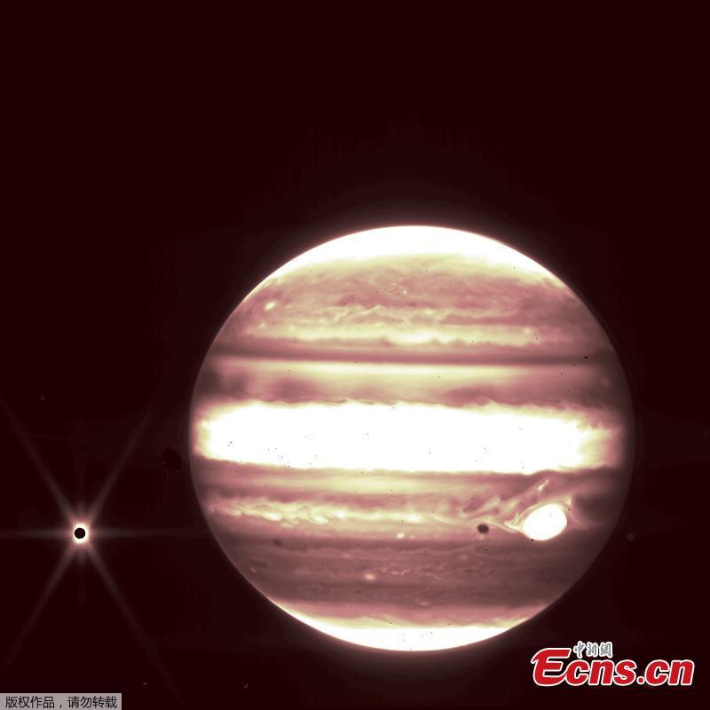 Photo released by NASA on July 14, 2022 shows Jupiter's iconic Great Red Spot appearing white in this infrared image from the James Webb Telescope's NIRCam 2.12 micron filter. (Photo/Agencies)