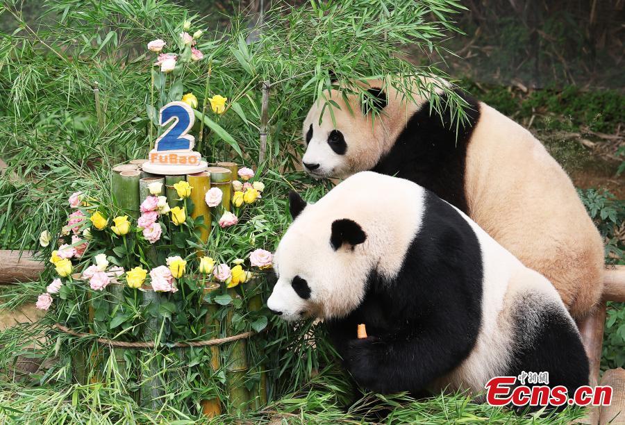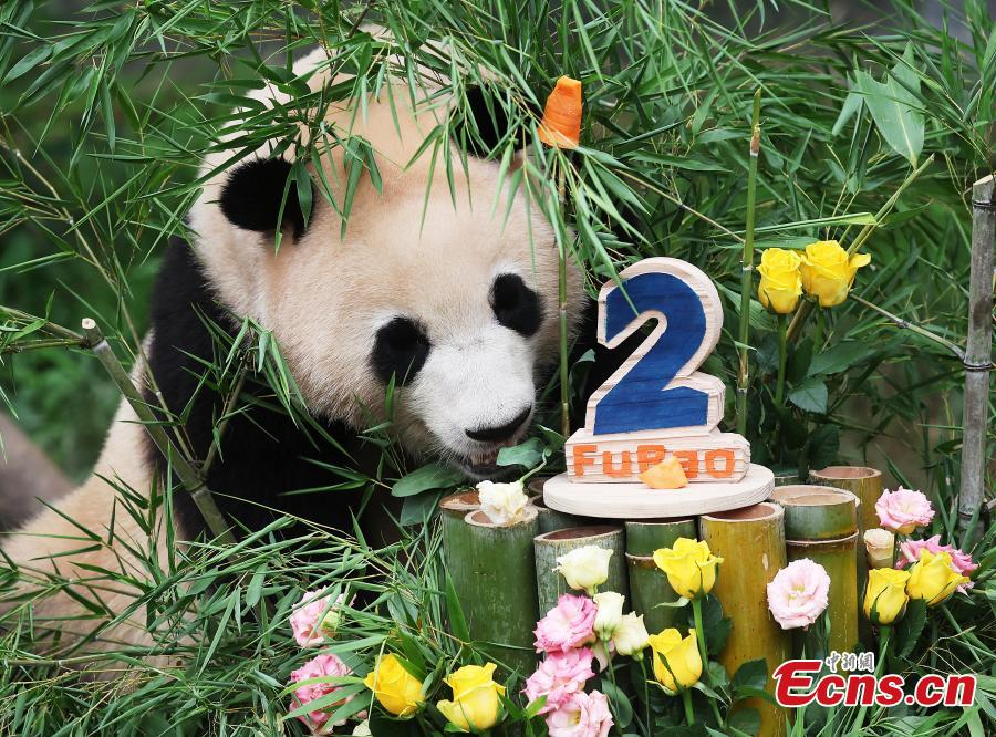 Giant panda Fu Bao celebrates its 2-year-old birthday at the zoo of Everland in Yongin, South Korea, July 20, 2022. The panda was born on July 20, 2020, the first-ever giant panda born in South Korea. (Photo/VCG)