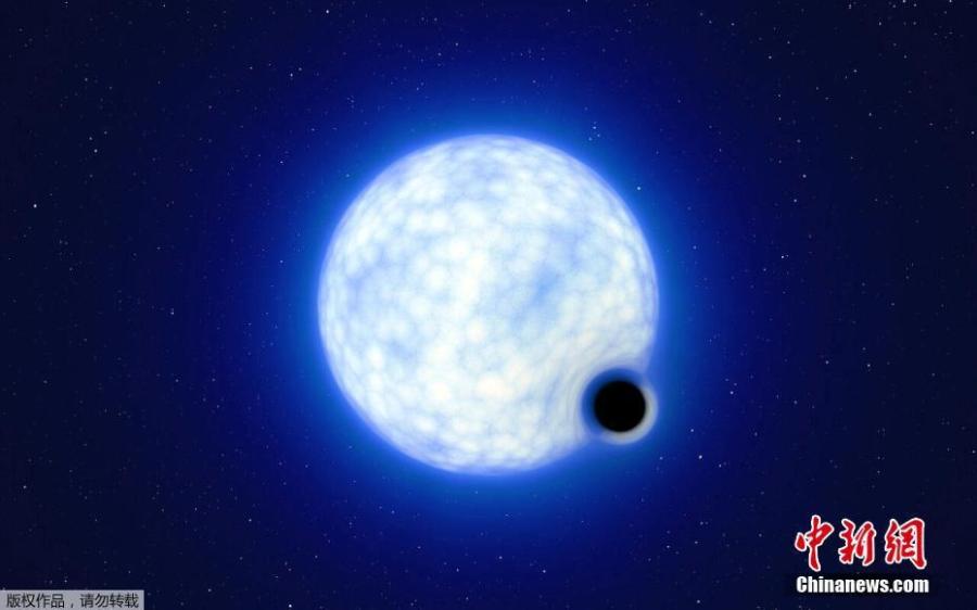 An artist's impression showing what the binary star system VFTS243 - containing a black hole and a large luminous star orbiting each other ? might look like if observed from close range. (Photo/Agencies)