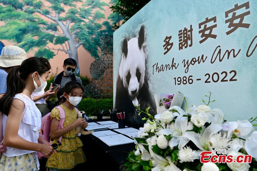 Visitors mourn giant panda An An at Ocean Park, the Hong Kong Special Administrative Region, July 21, 2022. (Photo: China News Service/Li Zhihua)