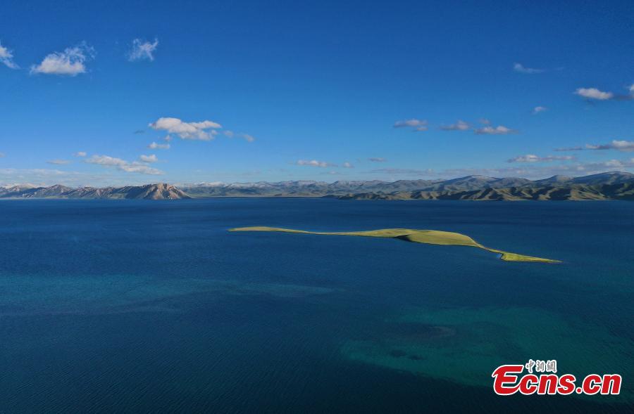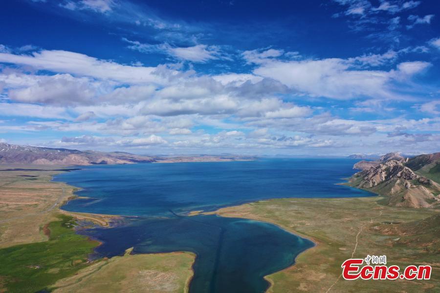 Summer scenery of Dongge Cuona Lake as pure as a "sapphire" in Maduo county, Golog Tibetan Autonomous Prefecture, northwest China's Qinghai Province. (Photo: China News Service/Ma Mingyan)