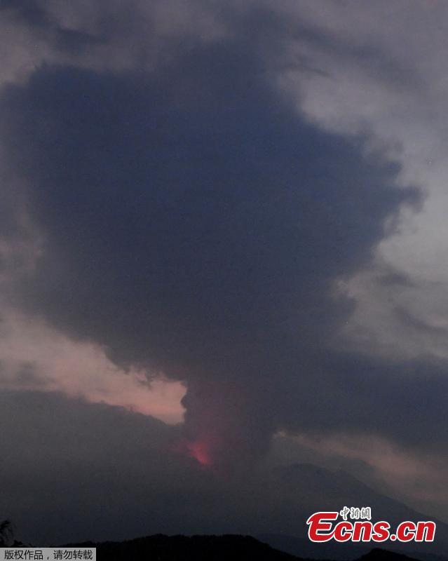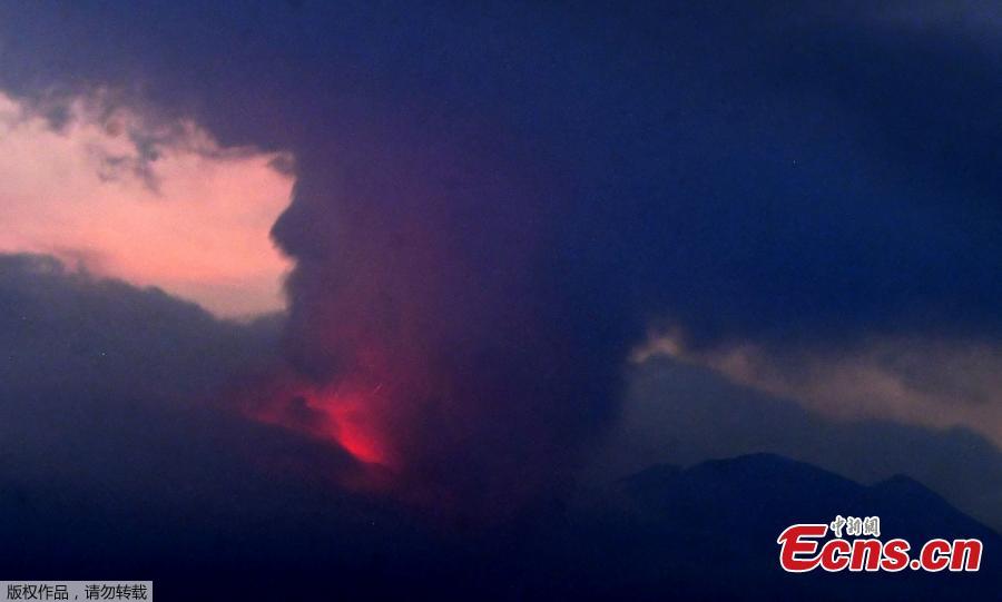 Photo shows orange flames flashing near the crater and dark smoke of ash billowing from the mountaintop high up into the night sky on the island of Kyushu, Japan, July 24, 2022. (Photo/Agencies)