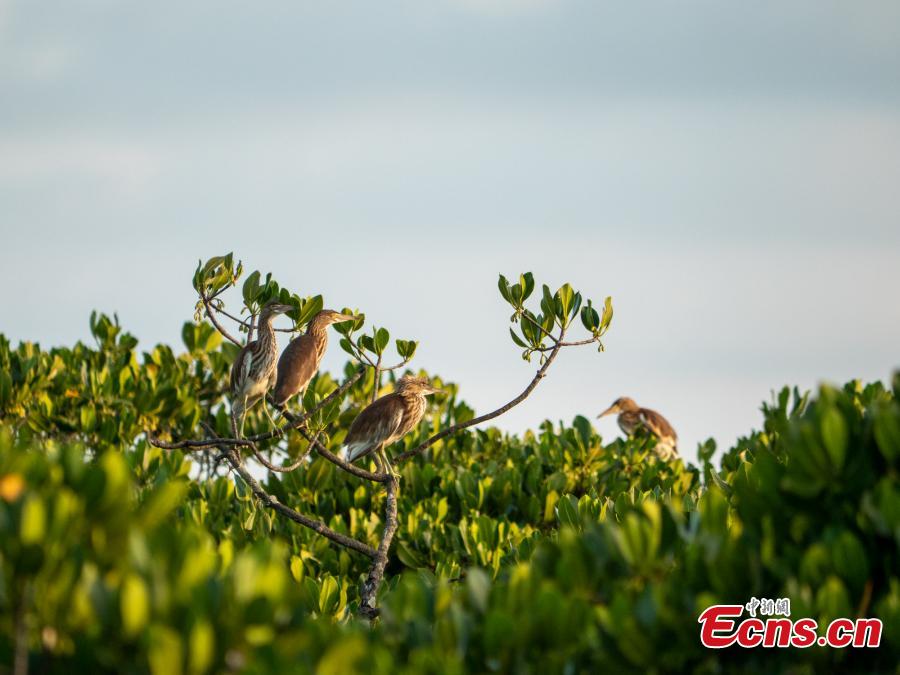 The mangrove forest covers a total area of more than 130 hectares in Lingao county with a large number of herons staying here.