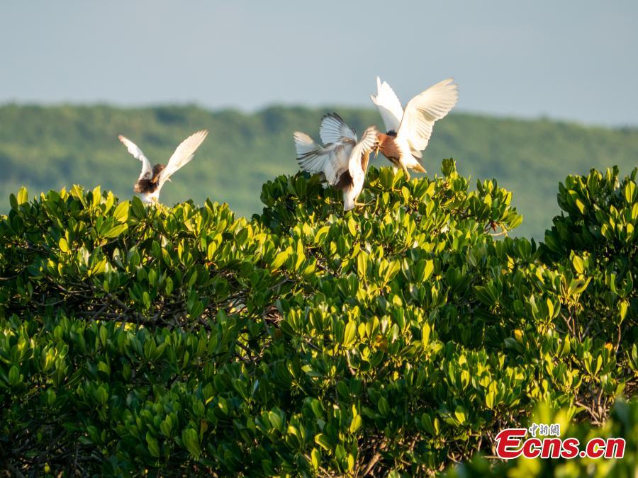 Egrets fly over mangrove trees in Xinying town of Lingao county, south China's Hainan Province, July 24, 2022 (Photo: China News Service/Ling Nan)