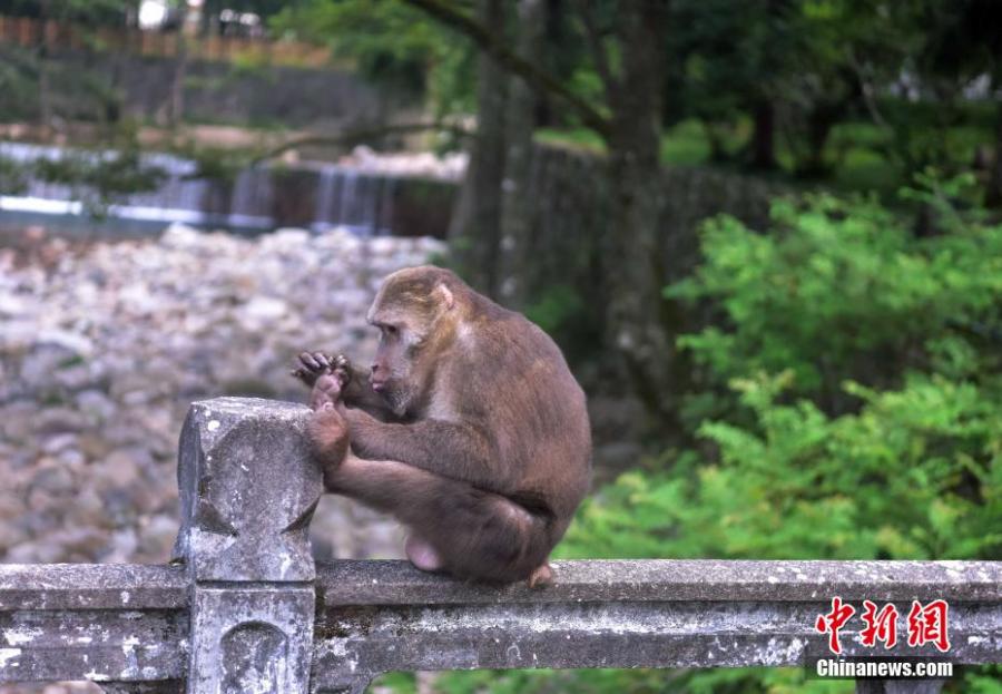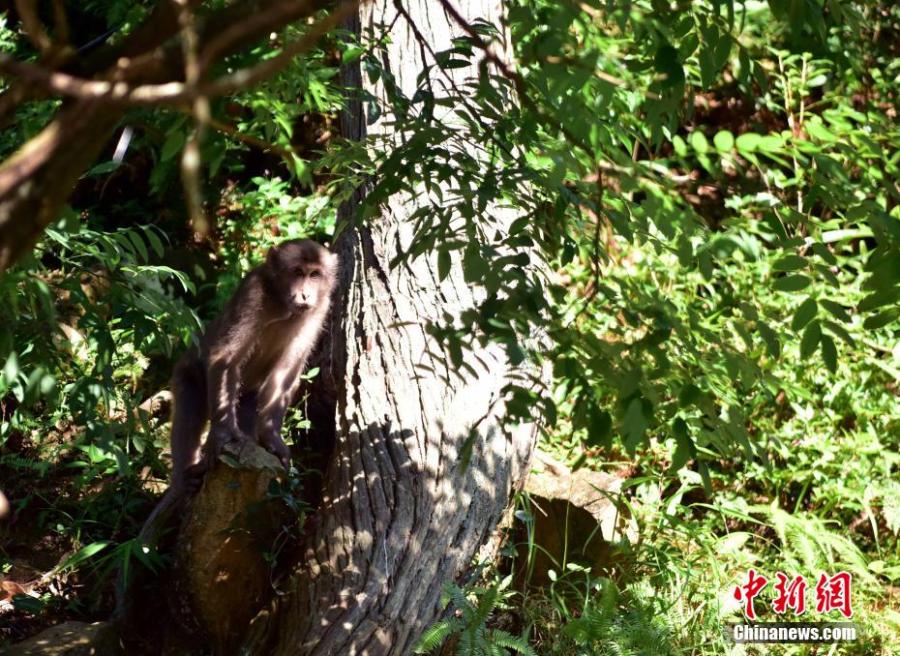 A Tibetan macaque is spotted in the Wuyishan National Park, east China's Fujian Province, July 25, 2022. (Photo: China News Service/Zhang Lijun)