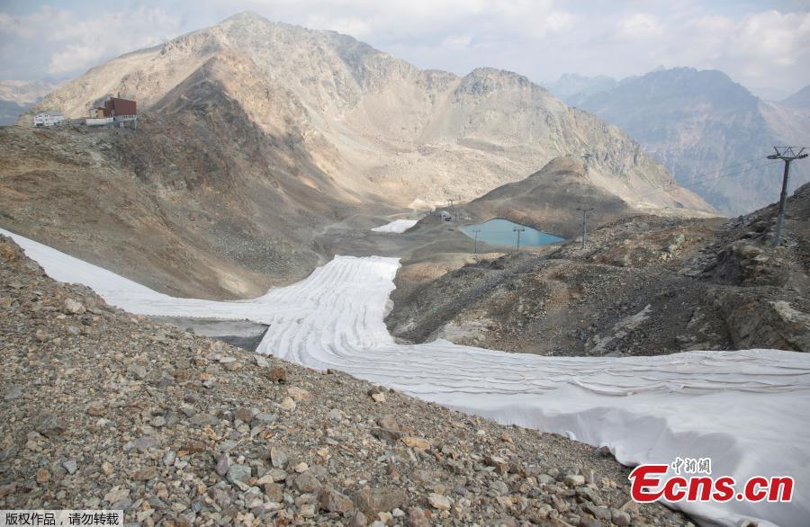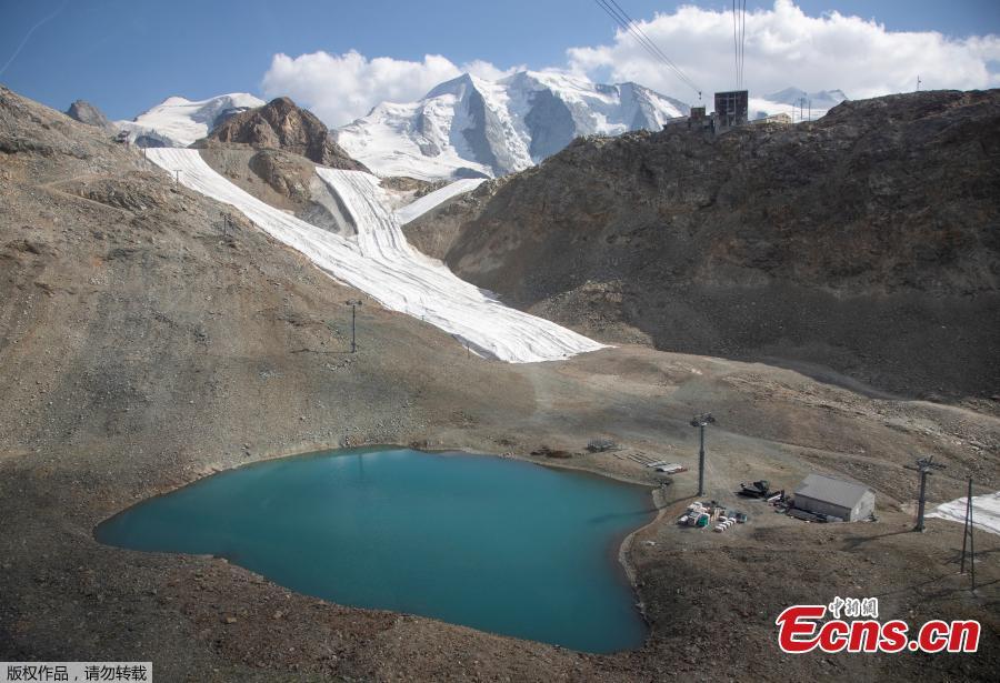 Snow from the last winter season is covered with blankets on a slope beside the top station of a cable car at Diavolezza ski area near the Alpine resort of Pontresina, Switzerland July 21, 2022. (Photo/Agencies)