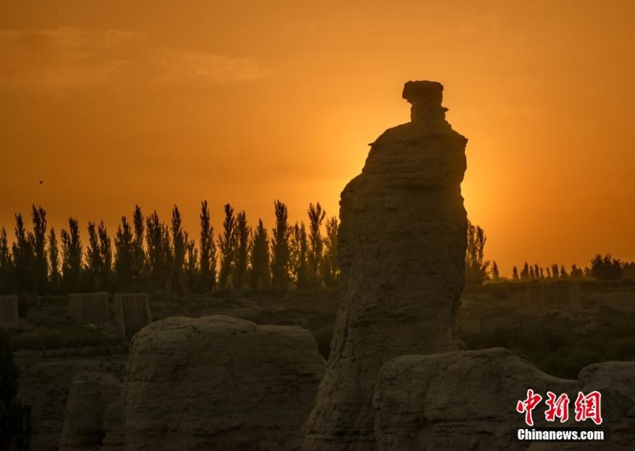 The whole city is like a magnificent sculpture standing on the ground. The picture shows the sunset over the Ruins. (Photo: China News Service/Liu Jian)