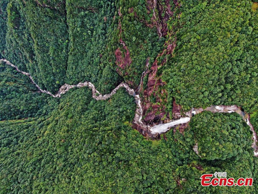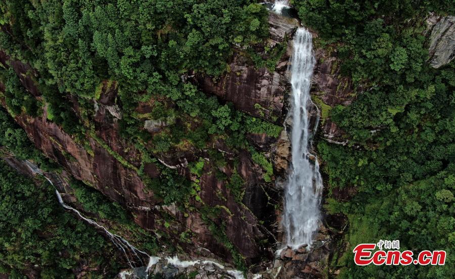 Aerial view of the Yuanbao mountain National Nature Reserve in Rongshui Miao autonomous county of Liuzhou city, south China's Guangxi Zhuang Autonomous Region, July 31, 2022. (Photo provided to China News Service)