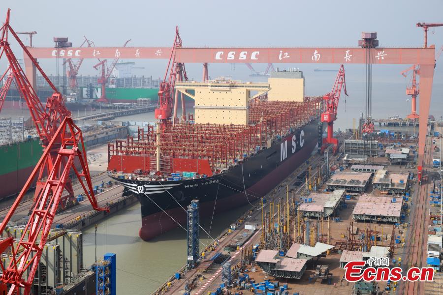 The ship, with a capacity of 24,116 TEUs, was undocked at the shipyard on Monday, marking another breakthrough for the Chinese shipbuilder in building ultra large container vessels.