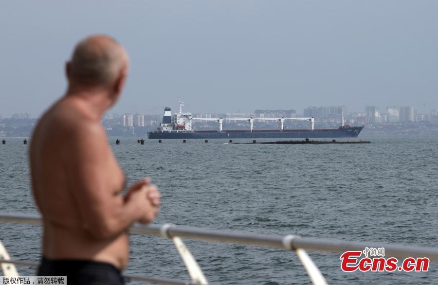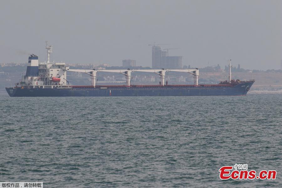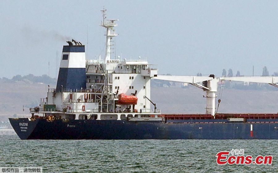 The Sierra Leone-flagged cargo ship "Razoni" loaded with 26,000 metric tons of Ukrainian corn leaves the Ukraine's Odesa port heading to the port of Tripoli in Lebanon after restarting grain export in Odesa, Ukraine, Aug. 1, 2022. (Photo/Agencies)