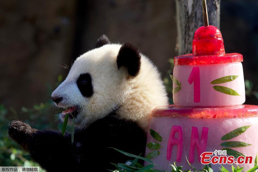Giant panda cub Huanlili celebrates her first birthday with a special cake at the Beauval zoological park in Saint-Aignan, France, Aug. 2, 2022. (Photo/Agencies)