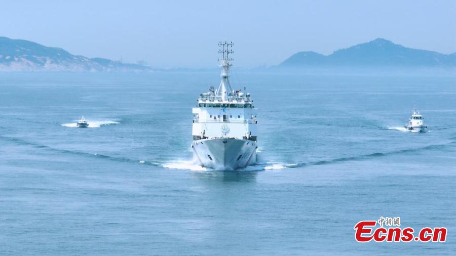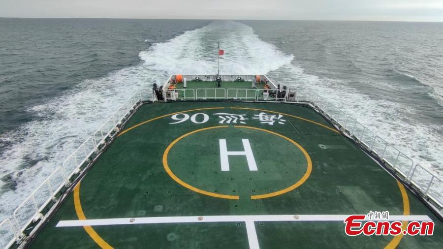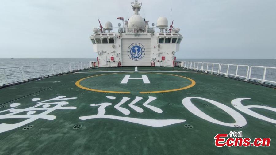 China's first large-scale maritime patrol ship, Haixun 06, carries out patrol mission in the coastal areas of east China's Fujian Province, Aug. 2, 2022. (Photo provided to China News Service)