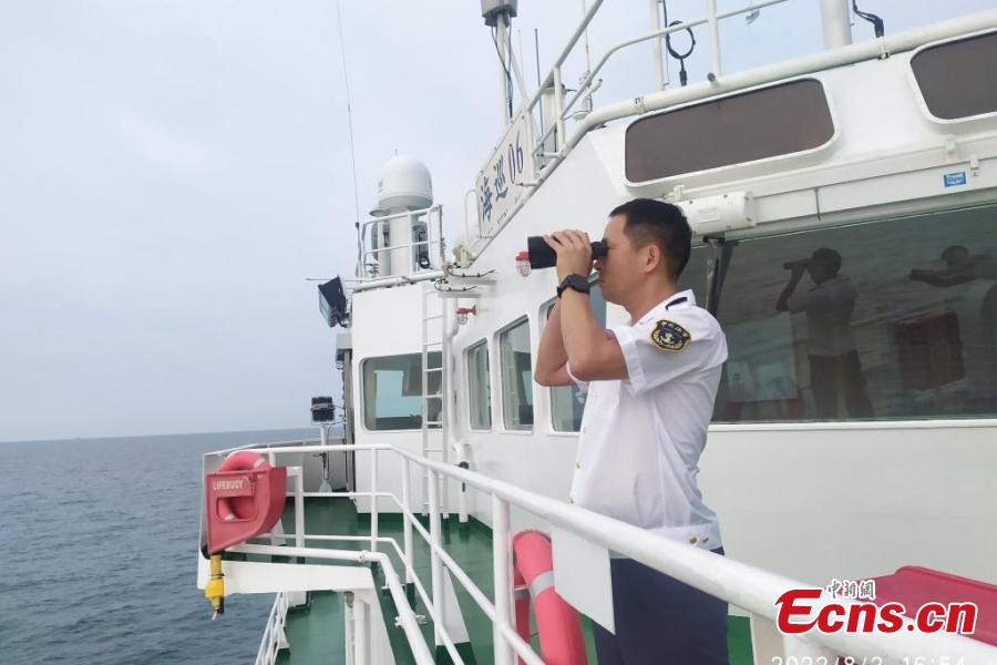 Maritime personnel take part in a patrol mission in the coastal areas of east China's Fujian Province, Aug. 2, 2022. (Photo provided to China News Service)