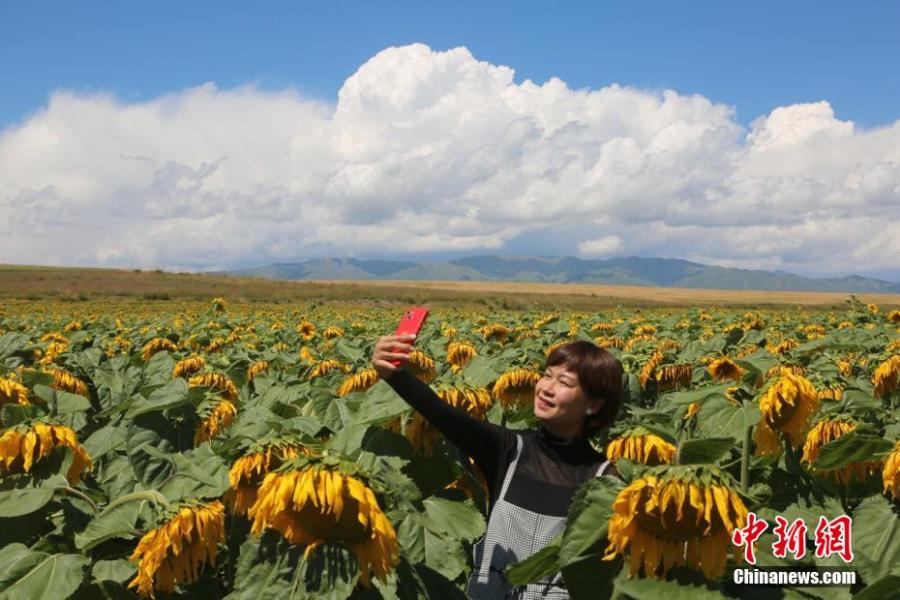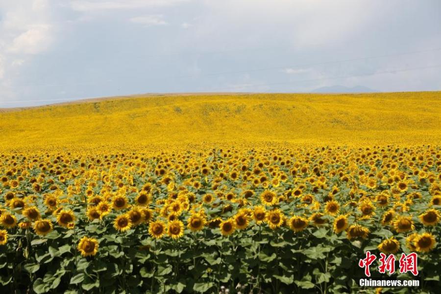 More than 3,000 hectares of sunflowers are in full bloom in midsummer in Zhaosu County, Kazak Autonomous Prefecture of Ili, northwest China's Xinjiang Uyghur Autonomous Region. (Photo: China News Service/Li Wenwu)