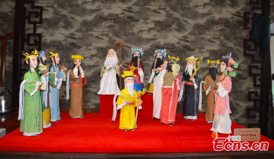 Photo shows dough sculptures "Eight Immortals Crossing the Sea" made by folk artist He Xiuping in Renqiu, north China's Hebei Province, Aug. 4, 2022. (Photo: China News Service/Zhang Xuelei)