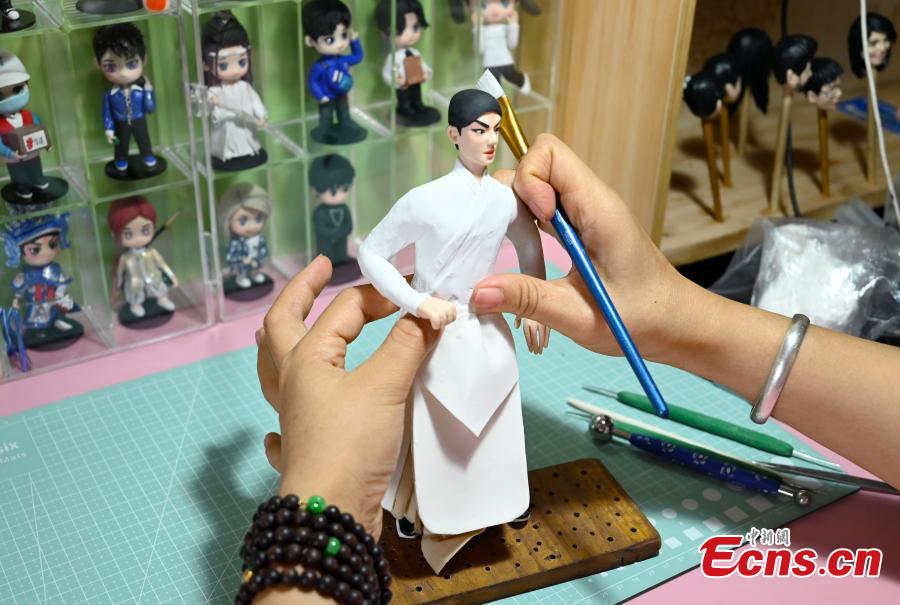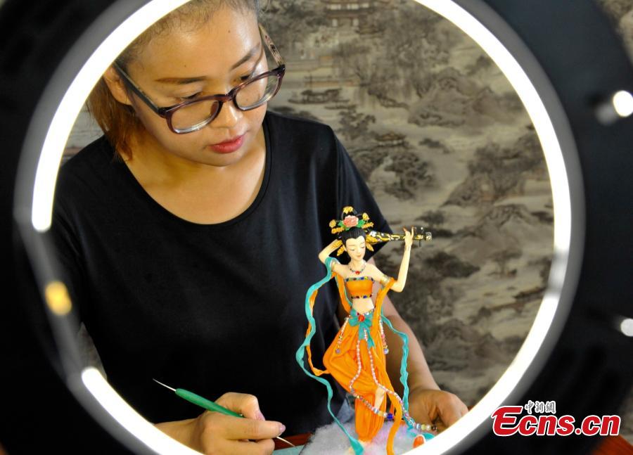 Folk artist He Xiuping makes a dough sculpture legendary heroine Mu Guiying in Renqiu, north China's Hebei Province, Aug. 4, 2022. (Photo: China News Service/Zhang Meng)