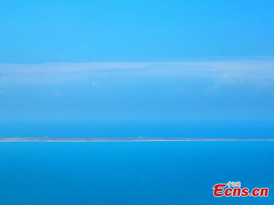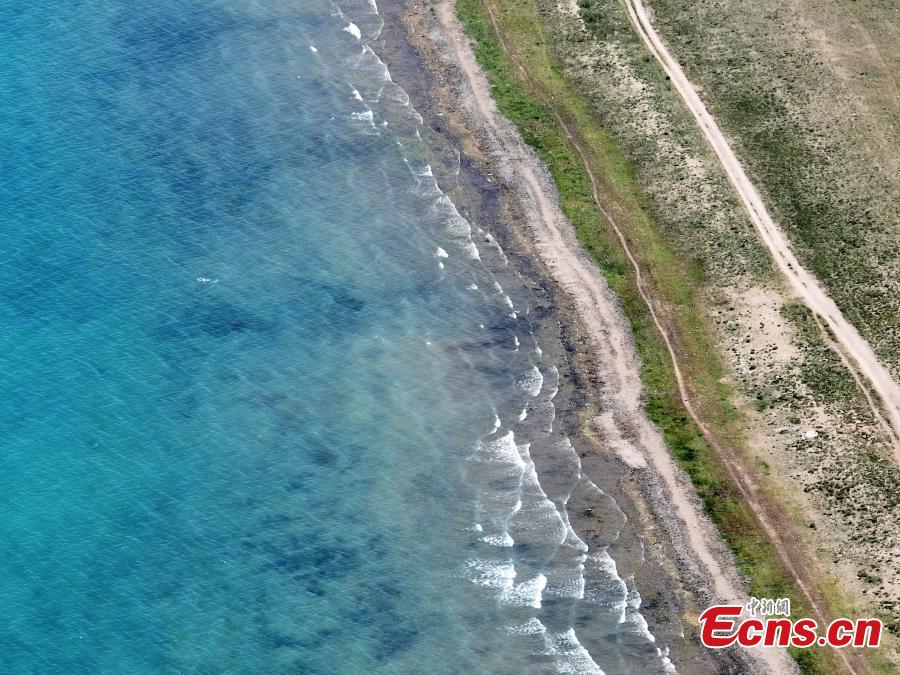 Aerial photo shows a view of the Erlangjian scenic spot of Qinghai Lake in northwest China's Qinghai Province, Aug. 8, 2022. (Photo: China News Service/Qi Zengbei)