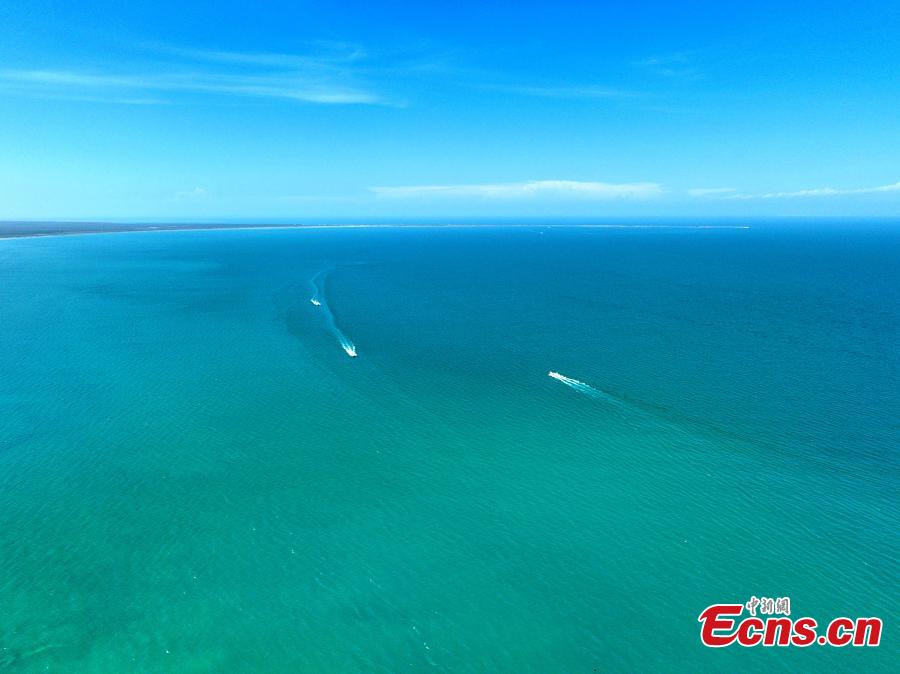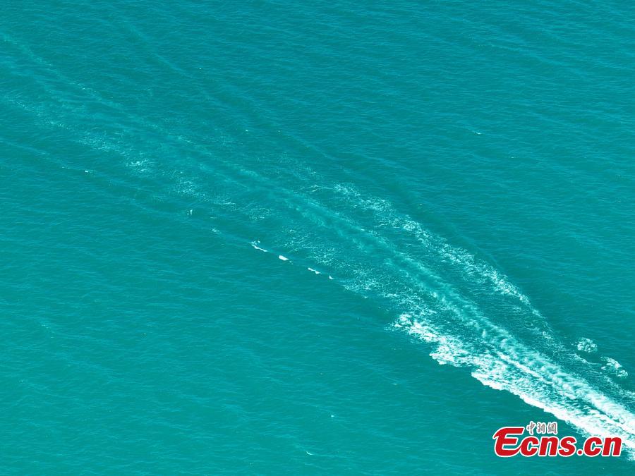 Aerial view of Qinghai Lake, dubbed the "Most beautiful lake in China", in Gonghe County, Hainan Tibetan Autonomous Prefecture, northwest China's Qinghai Province, Aug. 8, 2022. (Photo: China News Service/Qi Zengbei)