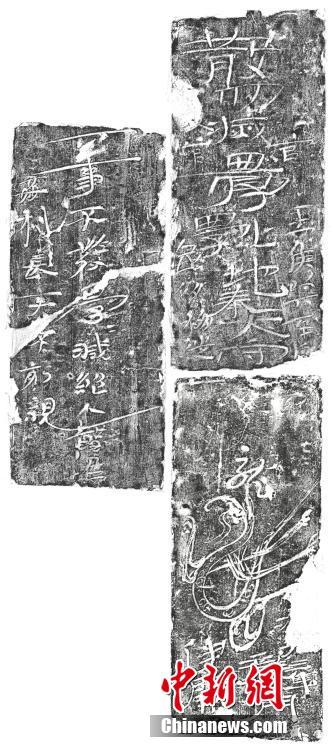 Photo combined on June 5, 2019 shows three floor tiles with inscriptions unearthed from Chamber M6 of an ancient tomb of Eastern Han Dynasty (25-220) in Xi'an, northwest China's Shaanxi Province. (Photo provided to China News Service)