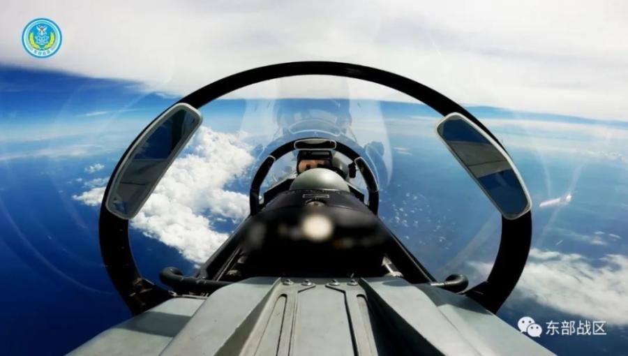An Air Force pilot navigates an aircraft next to a fighter jet during joint combat training exercises around the Taiwan Island, Aug. 9, 2022. (Photo provided to China News Service)