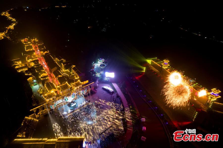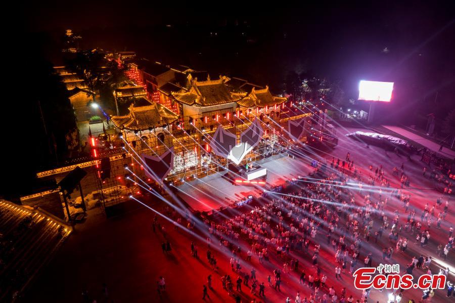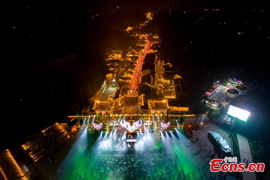 Dayang ancient town is illuminated during an electronic music festival in Zezhou county of Jincheng city, north China's Shanxi Province, Aug. 11, 2022. (Photo: China News Service/Wei Liang)