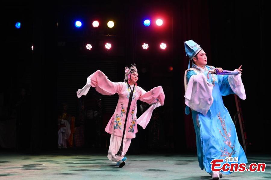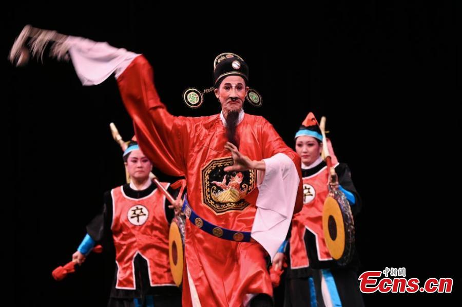 Artists perform Teochew opera in the Hong Kong Special Administrative Region. (Photo: China News Service/Li Zhihua)