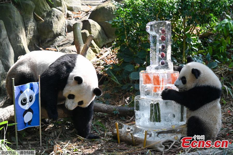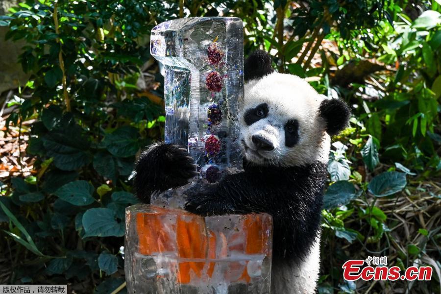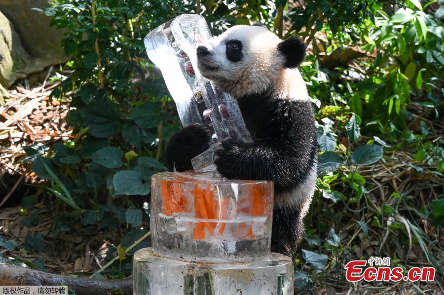 Le le, the first giant panda born in Singapore turns one year old on August 14. A birthday celebration was held in the River Wonders' giant panda forest exhibit in Singapore, Aug. 12, 2022. (Photo/Agencies)