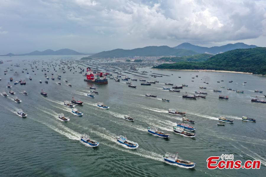 A large number of fishing boats sail out of Zhapo port of Hailing island in Yangjiang city, south China's Guangdong Province, Aug. 16, 2022. Local fishermen began their fishing work as a three-and-a-half-month seasonal fishing ban was lifted in South China Sea on Tuesday. (Photo: China News Services/Chen Jimin)