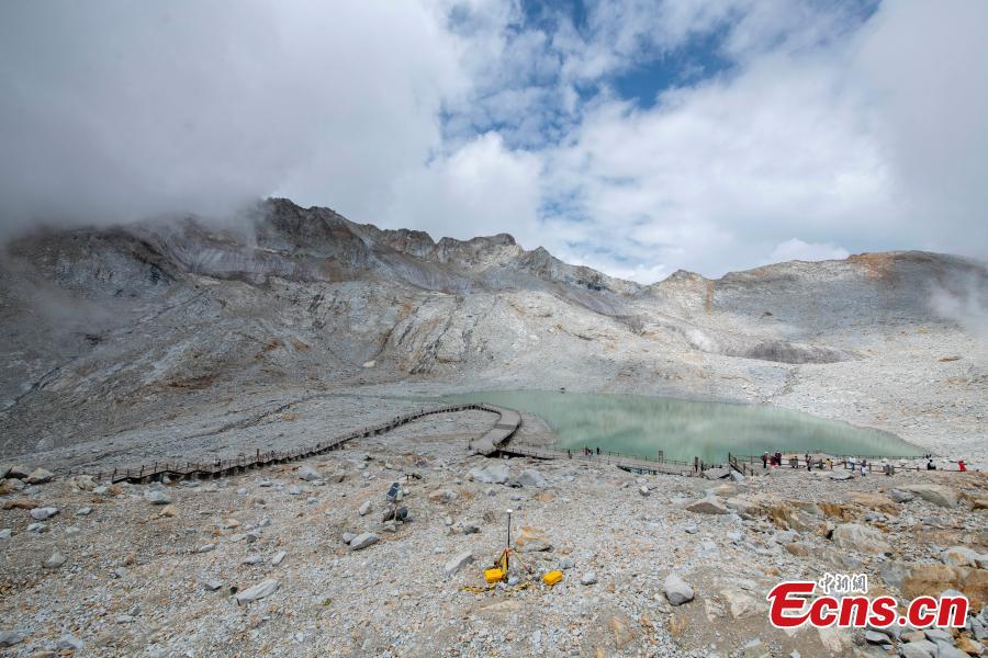 Tourists enjoy spectacular view of the Dagu Glacier at the Dagu Glacier National Park, Heishui County of Aba Tibetan and Qiang Autonomous Prefecture, southwest China's Sichuan Province, Aug. 16, 2022. (Photo provided to China News Service)