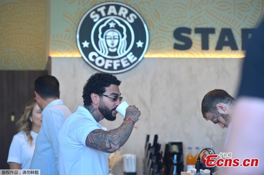 Russian singer and entrepreneur Timur Yunusov, better known as Timati, drinks coffee at a newly opened Stars Coffee shop in the former location of the Starbucks coffee shop in Moscow, Russia, Aug. 18, 2022. (Photo/Agencies)