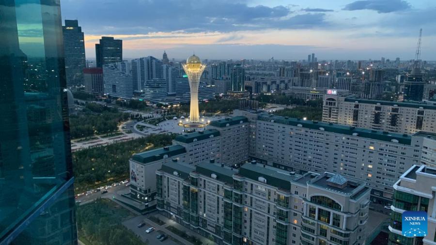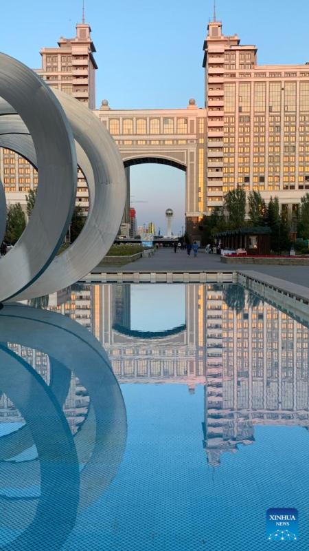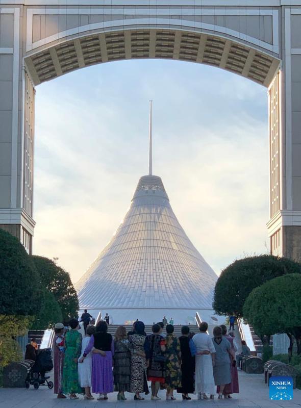 Photo taken on Sept. 10, 2022 shows the Baiterek Tower, a landmark tourist site of Nur-Sultan, Kazakhstan. (Xinhua/Lu Jinbo)