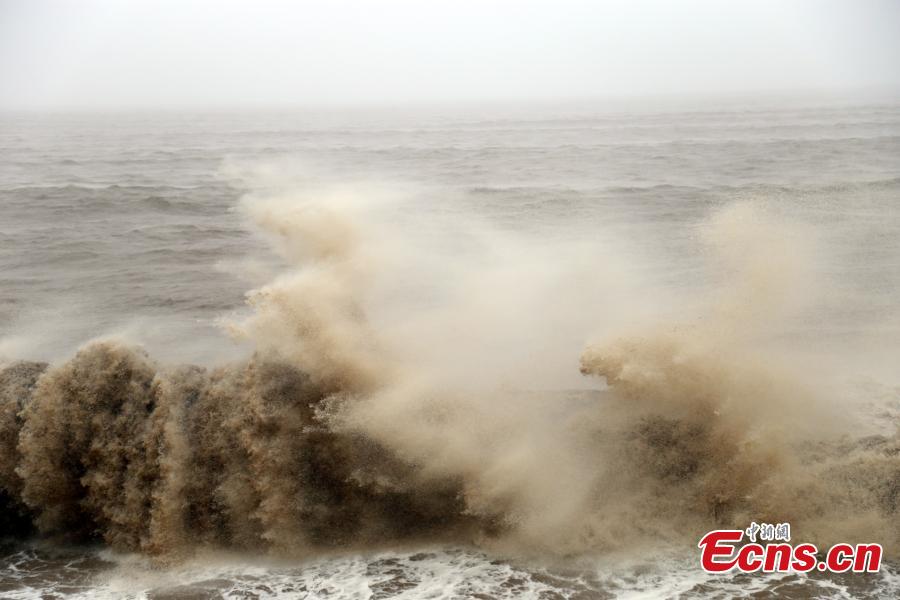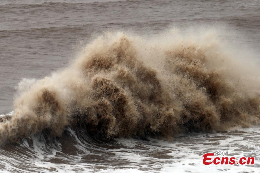 High waves surge in the coastal areas of Wenling city as Typhoon Muifa approaches east China's Zhejiang Province, Sept. 14, 2022. (Photo provided to China News Service)
