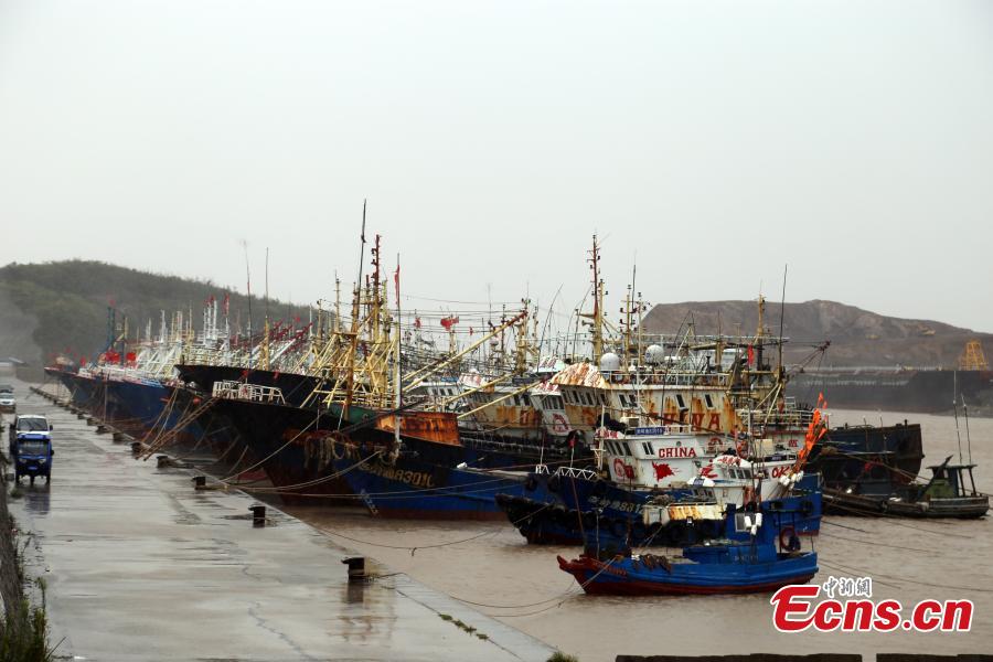 Fishing boats are docked at a harbor as Typhoon Muifa approaches Wenling, east China's Zhejiang Province, Sept. 14, 2022. (Photo provided to China News Service)