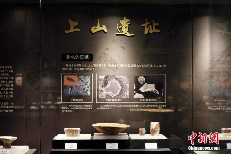Shangshan site is located in Pujiang County, Jinhua City of Zhejiang Province. The site, discovered in 2000, dates back between 11,400 years and 8,600 years. Archaeologists excavated remains related to rice cultivation dating back about 10,000 years, the earliest known remains of settlements. Altogether 21 relic sites in the province, dating to Shangshan Culture's early, middle and late stages, have been detected. It is known as the birthplace of global rice-farming culture painted pottery items excavated from the sites are the earliest of their kind found in China.