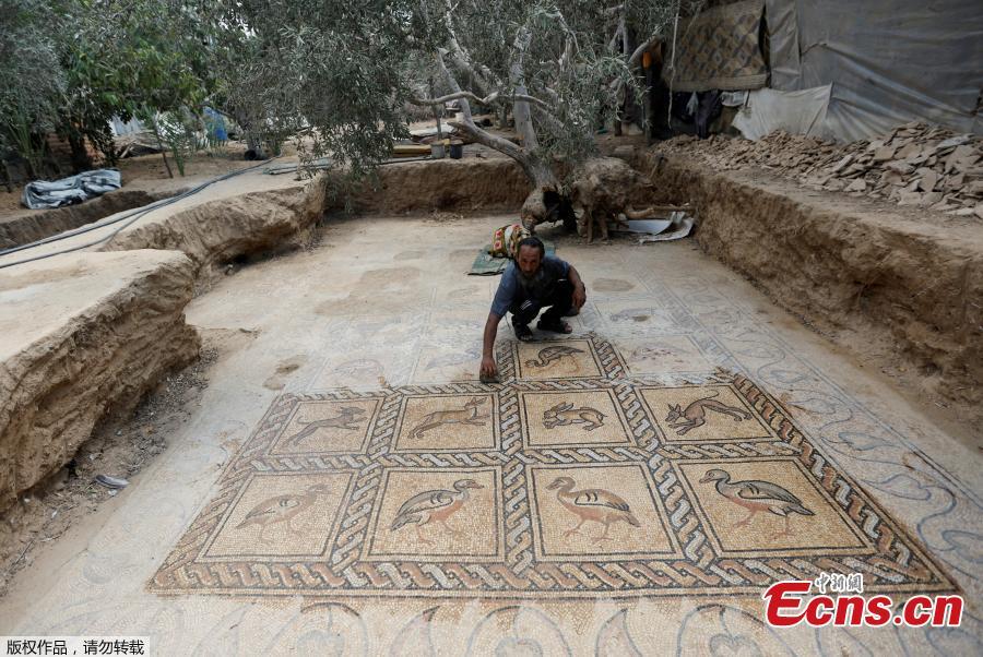 A view of a mosaic floor dating back to the Byzantine era, that was discovered in the central Gaza Strip, Sept. 18, 2022. (Photo/Agencies)