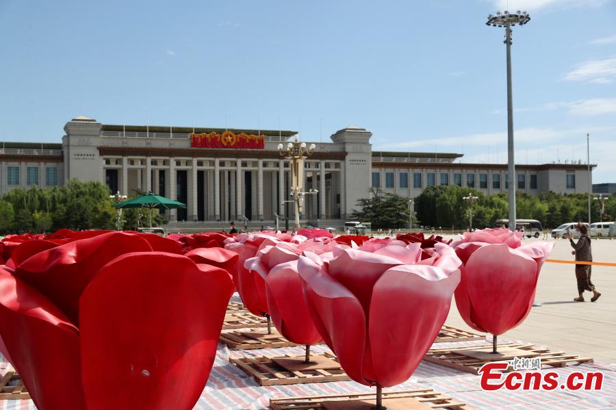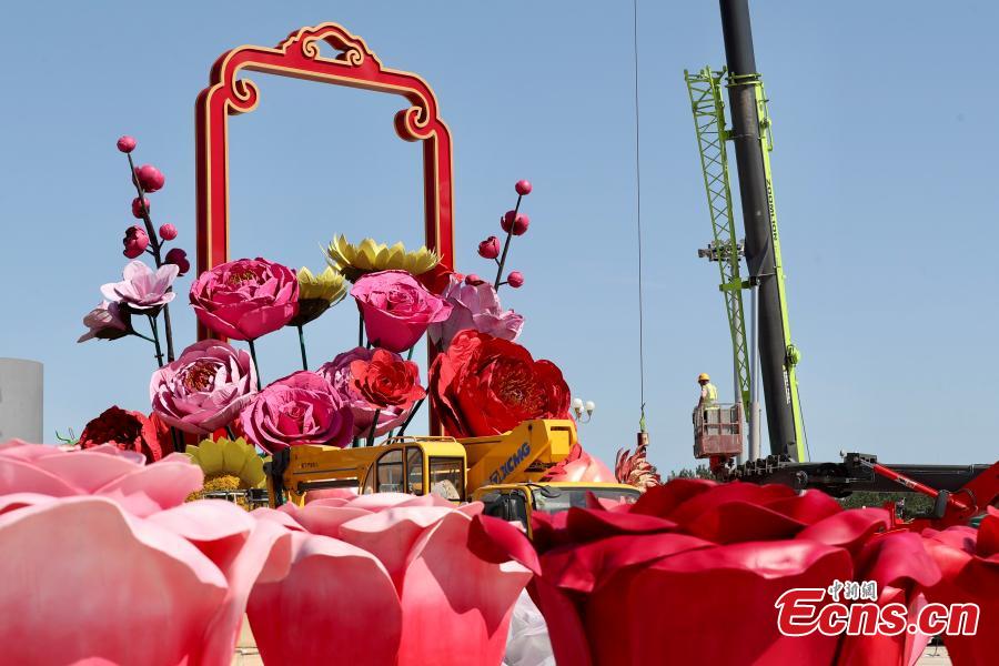 Flower displays have been set up in Beijing to celebrate the upcoming National Day.