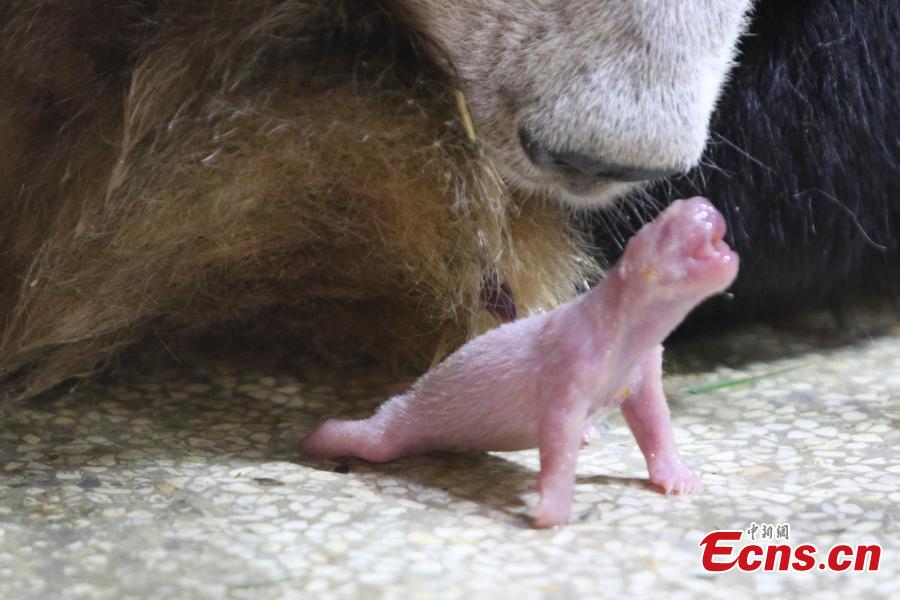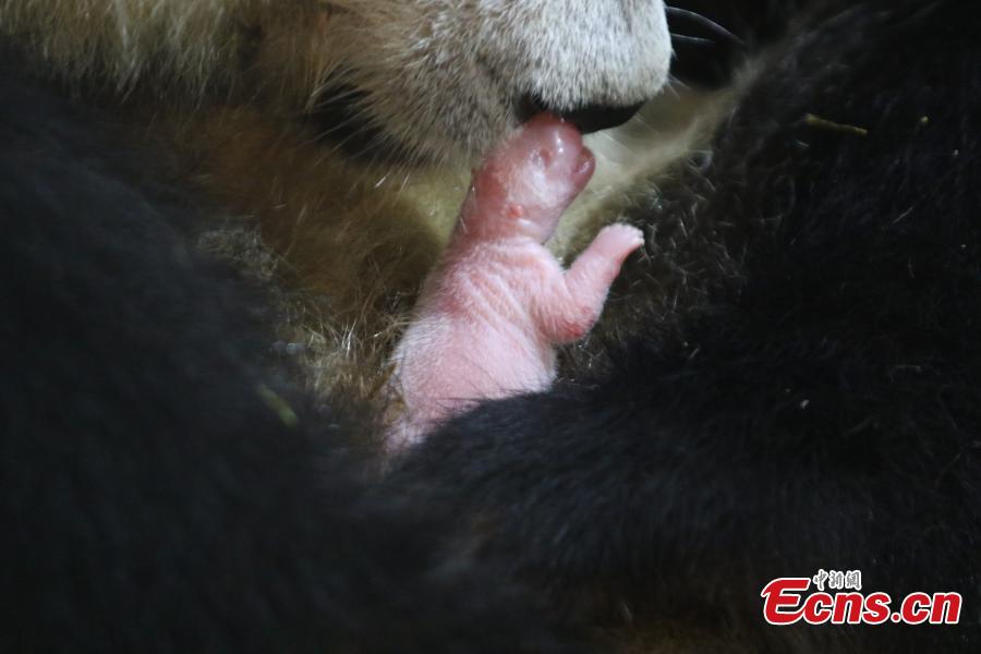 Giant panda mom An An gave birth to a female cub weighing 132.8 grams at the research center on Monday.