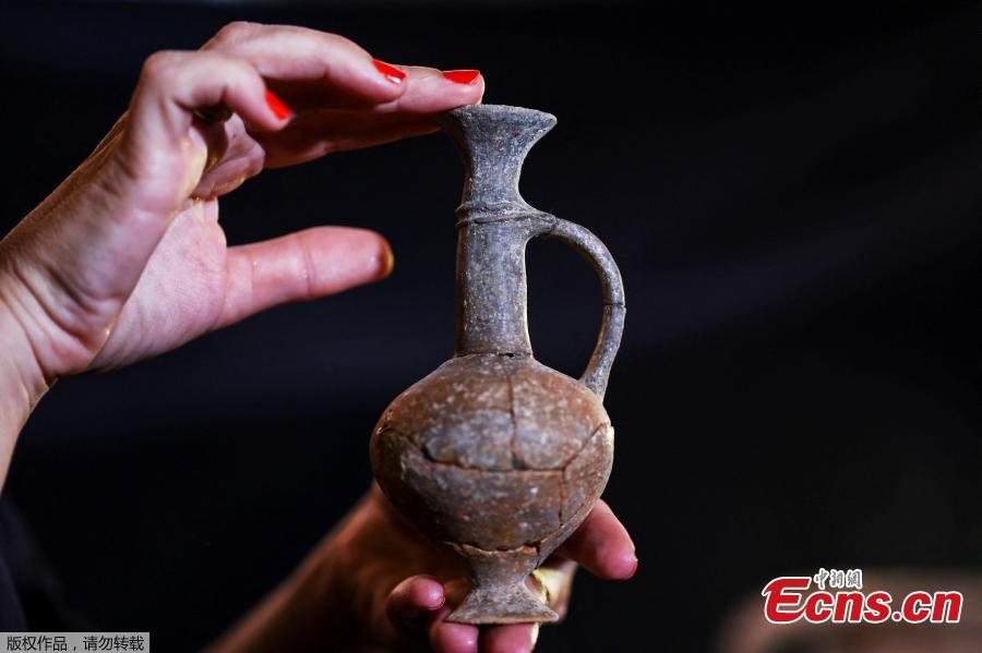 A vessel that contained opium in the 14th century BC, when it was used by Canaanites as an offering for the dead, is displayed in Jerusalem, Israel, Sept. 20, 2022. (Photo/Agencies)