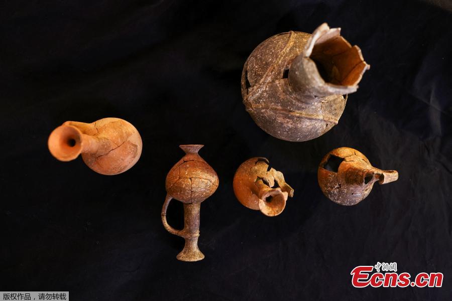 Vessels that contained opium in the 14th century BC are displayed in Jerusalem, Israel, Sept. 20, 2022. (Photo/Agencies)