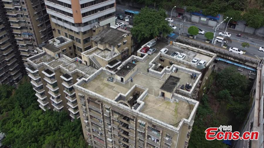 Cars are parked at a 10-story residential building's rooftop in Chongqing, Sept. 27, 2022. The rooftop parking lot eases parking problem in the mountain city. (Photo: China News Service/Xiao Jiangchuan)