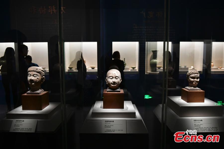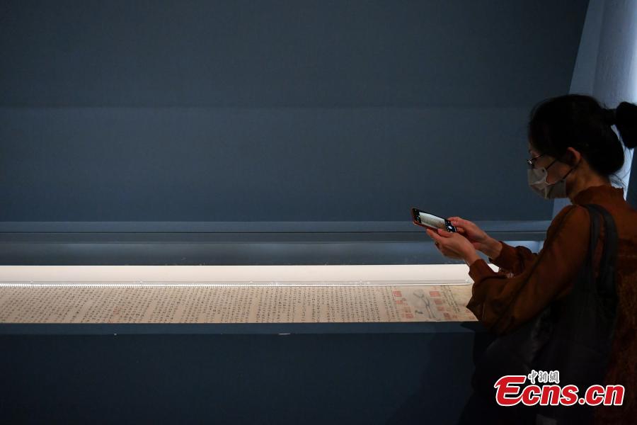 A visitor takes photos of exhibits at the Harmonious Co-existence, an joint exhibition of collections from the Palace Museum and the National Museum of China at the National Museum in Beijing, Sept. 29, 2022. (Photo: China News Service/Zhao Wenyu)
