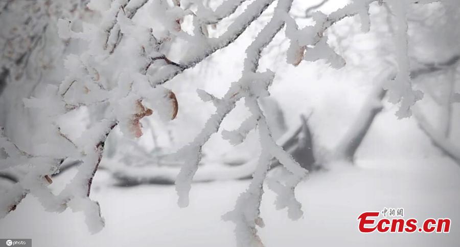 Breathtaking scenery of Sifang Dingzi Mountain blanketed in first snow of the year in Huinan county, northeast China's Jilin Province, Oct. 10, 2022. (Photo/ICphoto)