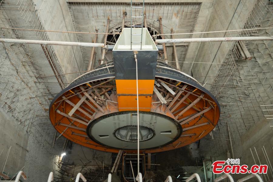 Unit 3 generator of the Huduxi Natigation and Hydropower Hub on Minjiang River is under construction in Qingshen, southwest China's Sichuan Province, Oct. 12, 2022. (Photo: China News Service/Liu Zhongjun)