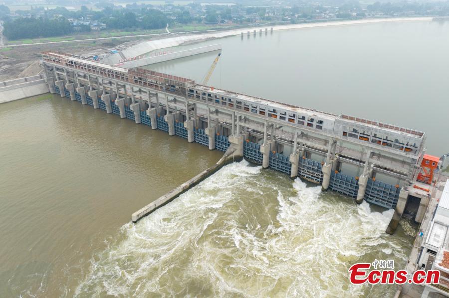 Photo taken on Oct. 12, 2022 shows the 17-hole dam of the Huduxi Natigation and Hydropower Hub on Minjiang River in Qingshen, southwest China's Sichuan Province. (Photo: China News Service/Liu Zhongjun)